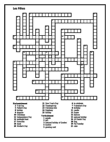 Fetes Holidays In French Crossword Teaching Resources